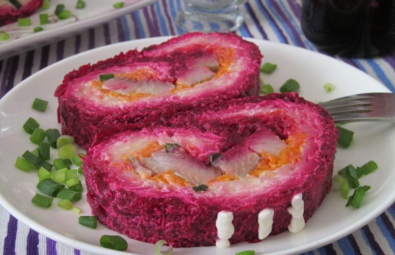 Салат-рулет «Сельдь под шубой» — необычная подача