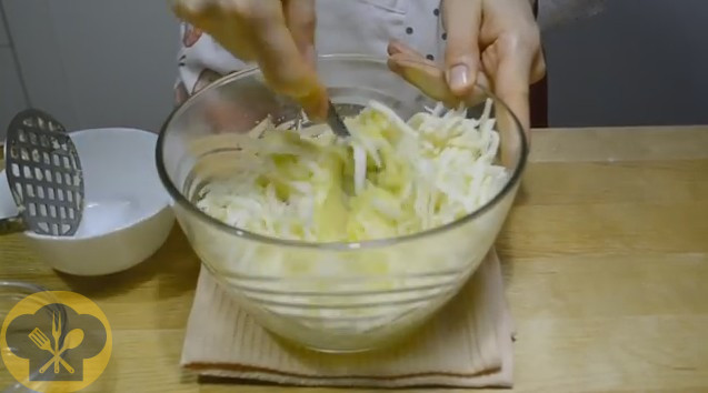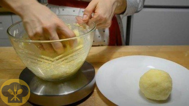 Для начинки отварите картофель и натрите сыр. Сделайте пюре из картофеля, добавив масло. Затем в горячее пюре добавляем сыр, укроп, перец и соль. Хорошо перемешиваем, сыр должен расплавиться.