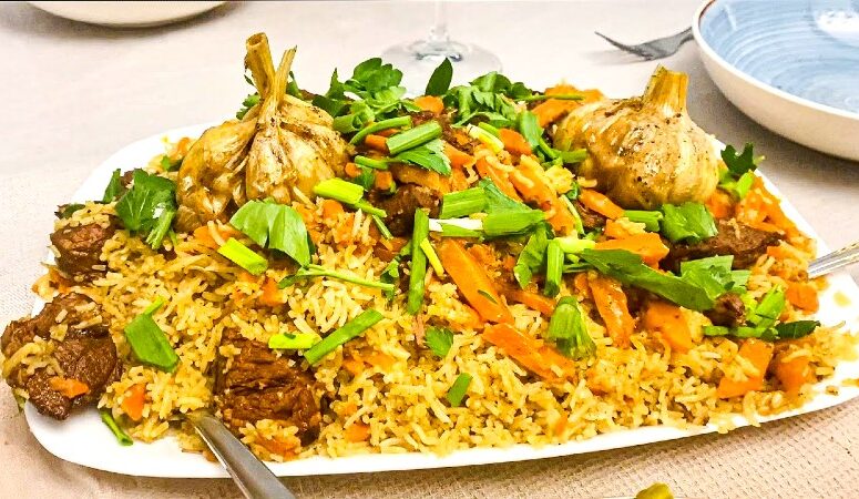 Салат «Диёр» с жареным картофелем узбекской кухни